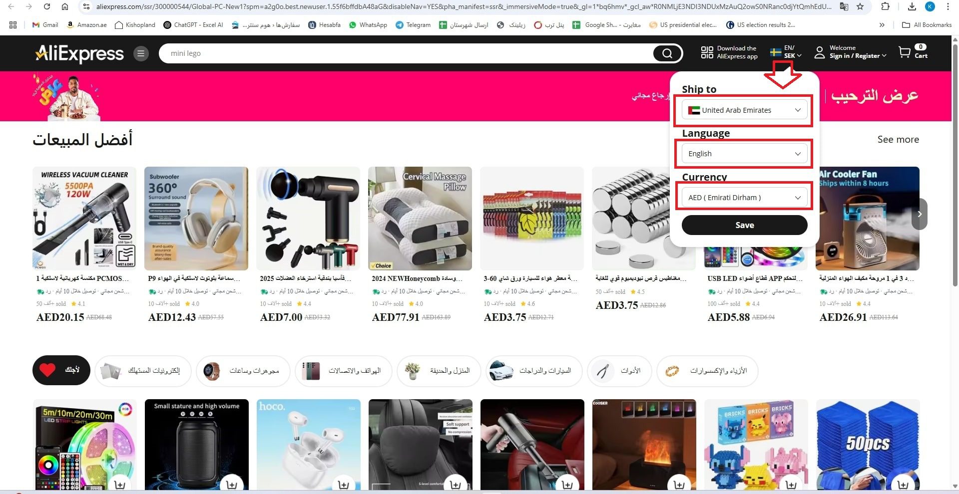اولین کاری که باید انجام دهید، تغییر ارز سایت به AED (درهم امارات) است. این کار دلایل مهمی دارد: