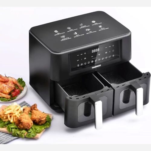 9.0 لیتر)، استفاده از یک سبد برای پخت و پز در قسمت های کوچکتر یا هر دو سبد به طور همزمان می تواند به شما کمک کند تا به سرعت سرو کنید و با نیمی از تلاش دو برابر نتیجه بگیرید. هنگام پختن غذاهای مختلف با زمان های پخت متفاوت در هر سبد، عملکرد Smart Finish پخت هر دو سبد را به طور همزمان تمام می کند. و اطمینان حاصل کنید که هر دو نوع غذا طعم اصلی خود را حفظ می کنند و به اثر بدون طعم متقابل دست می یابند. طراحی پنجره مشاهده: این سرخ کن هوای دوگانه دارای پنجره های دید واضح است. شما می توانید در حین پخت دقیقاً بدانید که غذایتان از نظر رسیده کجاست، بنابراین می توانید بدون باز کردن سبد، پیشرفت پخت و پز خود را بررسی کنید و هر بار از کامل بودن وعده های غذایی اطمینان حاصل کنید. کنترل دقیق دما و زمان: محدوده دمای سرخ کن هوا از حدود 80 درجه سانتی گراد تا 200 درجه سانتی گراد است و تایمر قابل تنظیم را می توان تا 60 دقیقه تنظیم کرد. هر سبد را می توان به صورت جداگانه تنظیم کرد تا بتوانید دما و زمان پخت متفاوتی را برای غذاهای مختلف انتخاب کنید. عملکرد کاربر پسند: صفحه نمایش دیجیتال LED لمسی با نور LED سفید کنترل بصری را ارائه می دهد. با 11 برنامه از پیش تعیین شده برای ران مرغ، مرغ، استیک، ماهی، بیکن، میگو، چیپس، سبزیجات و کیک، آماده کردن غذاهای مورد علاقه شما بسیار راحت است. طراحی هوشمندانه: Air Fryer Dual Zone ما دارای عملکرد هماهنگ سازی و تنظیم است تا اطمینان حاصل شود که غذاهای شما همزمان پخته می شوند. علاوه بر این، دسته خنککننده، پایههای ضد لغزش و محافظت در برابر گرمای بیش از حد، استفاده ایمن و بدون زحمت را تضمین میکند. ›
